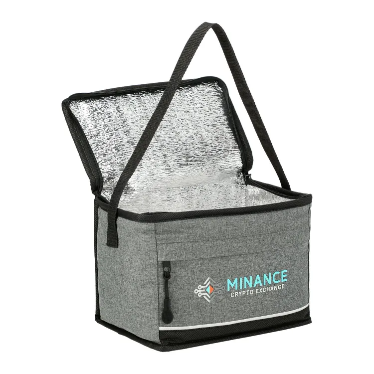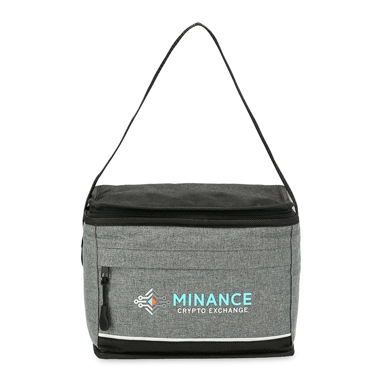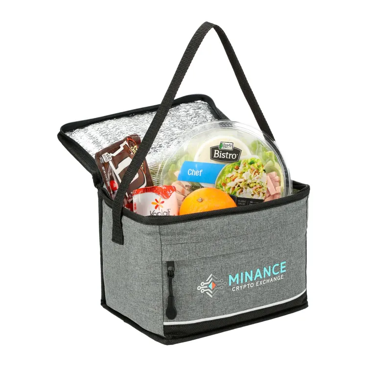 The Quarry Lunch Cooler - 6 Can is your go-to cooler bag for transporting snacks and beverages in style. Designed with a 6-can capacity, it's made from durable 210D polyester with non-woven polypropylene and features a foil-lined interior to keep your items fresh. The zippered front pocket provides extra storage for essentials, while the convenient strap allows for easy carrying or hanging.