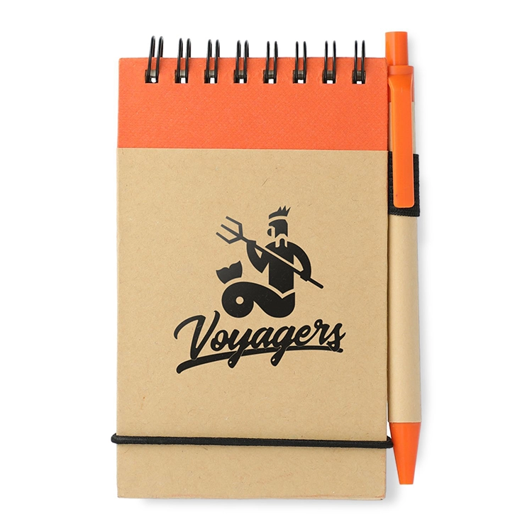 This recycled jotter includes a matching ballpoint pen and 60 FSC® Mix ruled sheets for capturing daily notes. The recycled cover features a secure band closure and a built-in pen loop for added convenience. Pens are packaged separately to maintain product integrity. Each purchase supports environmental nonprofits through 1% for the Planet, making this jotter a thoughtful choice for sustainable branding.