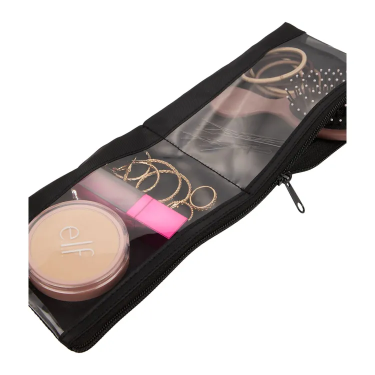 This dual-compartment organizer features transparent PVC panels that allow quick identification of stored items without unpacking. Constructed from 210D RPET, it offers a lightweight structure using recycled materials. The compact profile fits easily into backpacks, totes, or travel luggage, helping keep accessories separated and accessible. Suitable for events, corporate travel kits, or onboarding packages, it supports organized packing with a sustainability-focused approach.