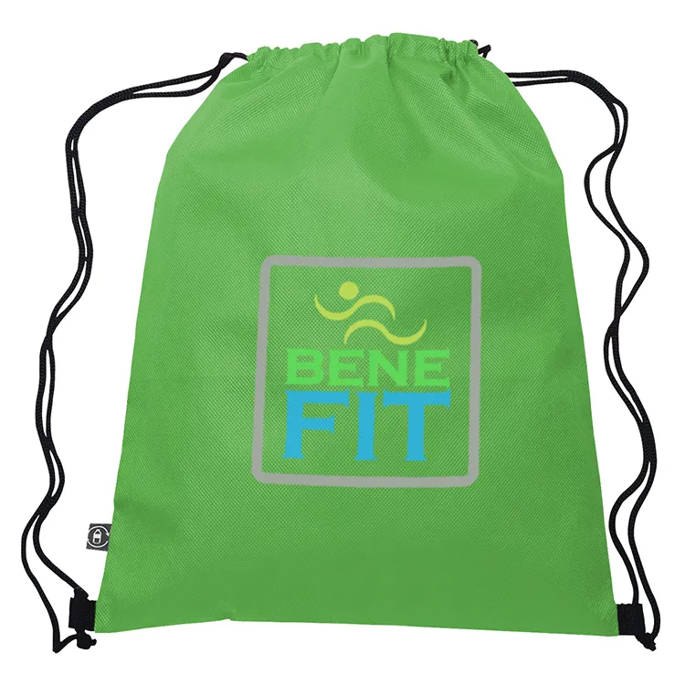 The rPET Non-woven Cinch Closure Drawstring Bag - 13" x 16.5" features a cinch top closure main compartment. This Eco friendly drawstring bag is made from recycled water bottles. Suitable for gym and sports activities, also can be used for a quick travel with your belongings safe and perfectly fitted. Spot clean and air dry is recommended.