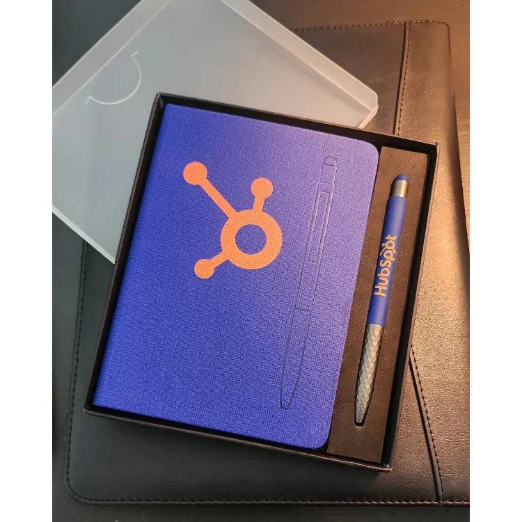This executive set pairs a textured notebook with 160 cream pages and a soft-touch aluminum pen, magnetically attached to the cover for easy access. A ribbon bookmark adds utility, while the refined packaging makes it ideal for gifting to new hires or business partners.