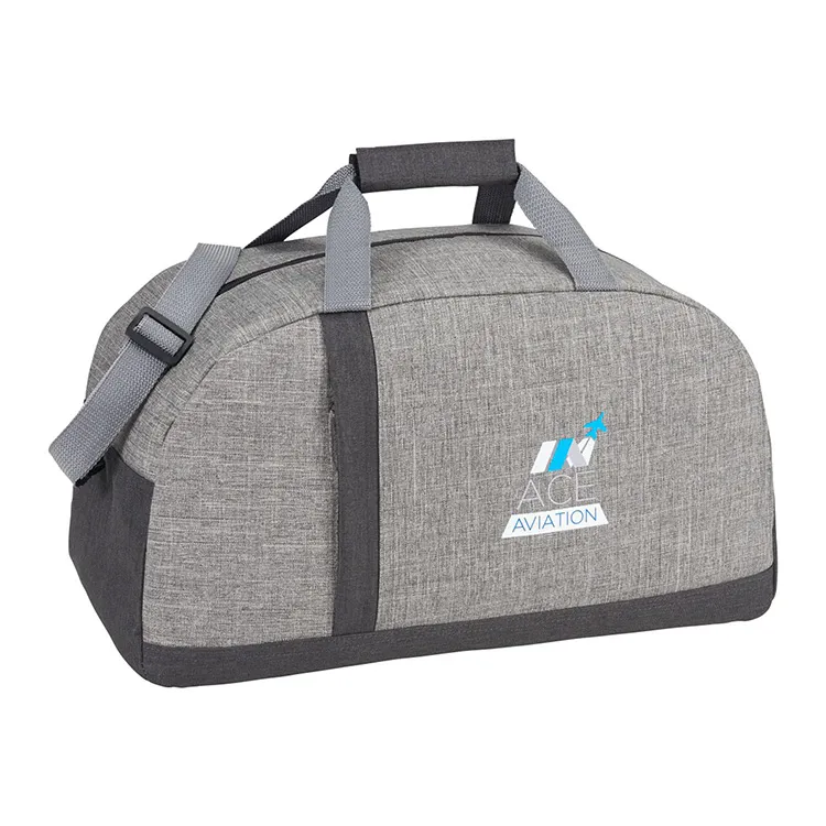 The Two-Tone rPET Sport Duffel Bag - 18" exterior material is made from 100% rPET. This duffel features a vertical zippered front pocket and a roomy zippered main compartment. Through a partnership with 1% For The Planet, one percent of sales of EcoSmart products will be donated to nonprofits dedicated to protecting the planet.