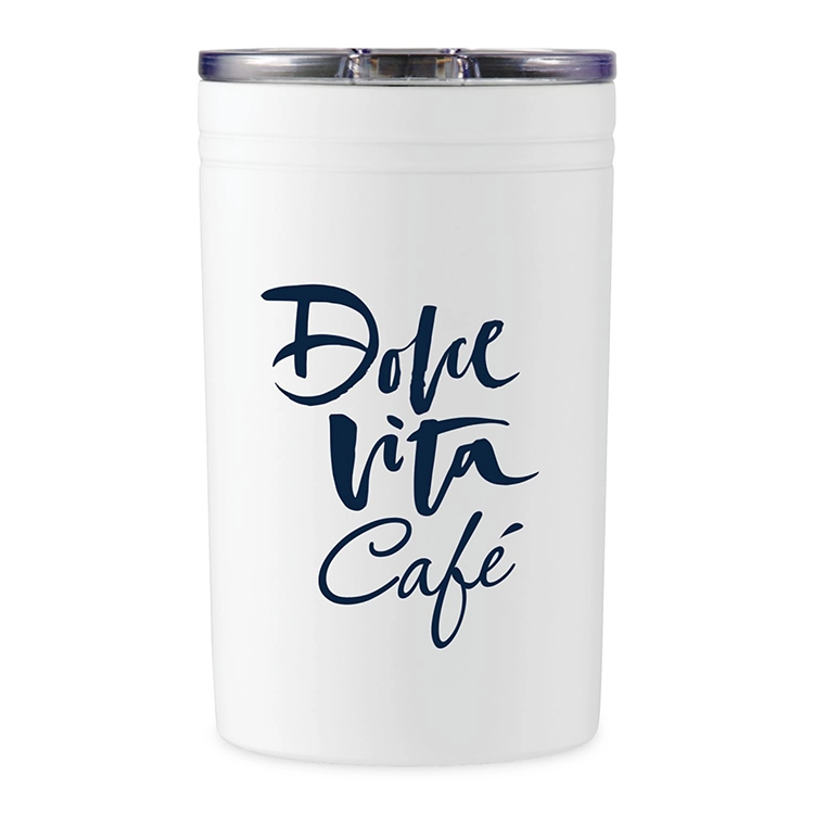 This double wall, vacuum sealed stainless steel 11 oz tumbler is a great statement piece at any celebration. The exterior doesn’t sweat while your cold drink stays cold for 15 hours and hot for 5 hours. It comes with a transparent lid that has a slide sipper, and also doubles as a tumbler and portable drink insulator, allowing you to enjoy your favorite drinks almost anywhere. Hand washing recommended.