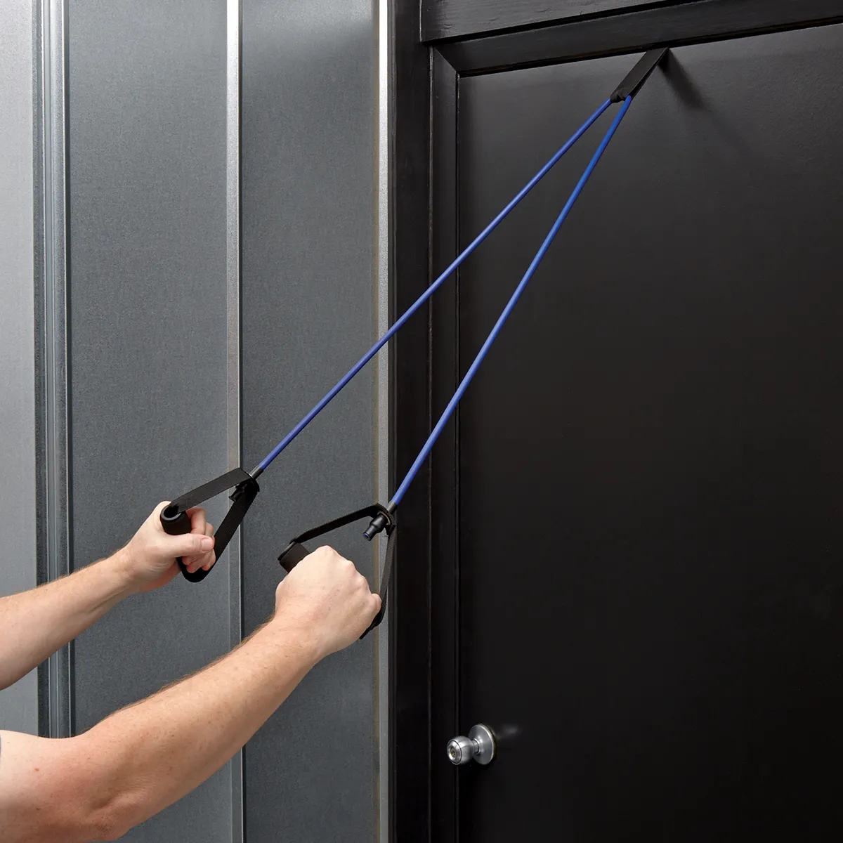 This Zen To Go Travel Duffel Kit is great for travel. It comes with a nylon pouch with drawstring closure. Features a foam comfort handles and two 8 ¼" door anchors. It is made of stretchable latex material. NOTE: Band size 64” long.
